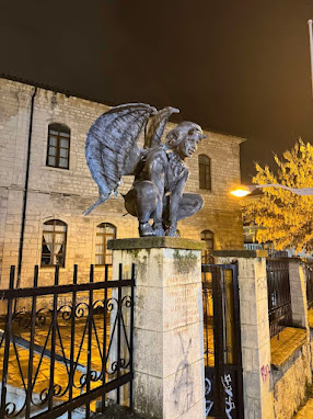 Ένα γκαργκόιλ σε μια κολώνα του Βαλταδωρείου Γυμνασίου Κοζάνης